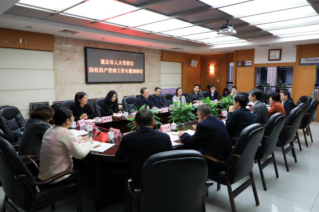 10月23日下午,重庆市人大常委会财经委主任委员袁天长、渝中区财政局党组书记杜伶等人大代表组成调研组来校调研国有资产管理工作。校长孙芳城、副校长陈兴述、副校长宋豫,学校相关职能部门负责人陪同考察。