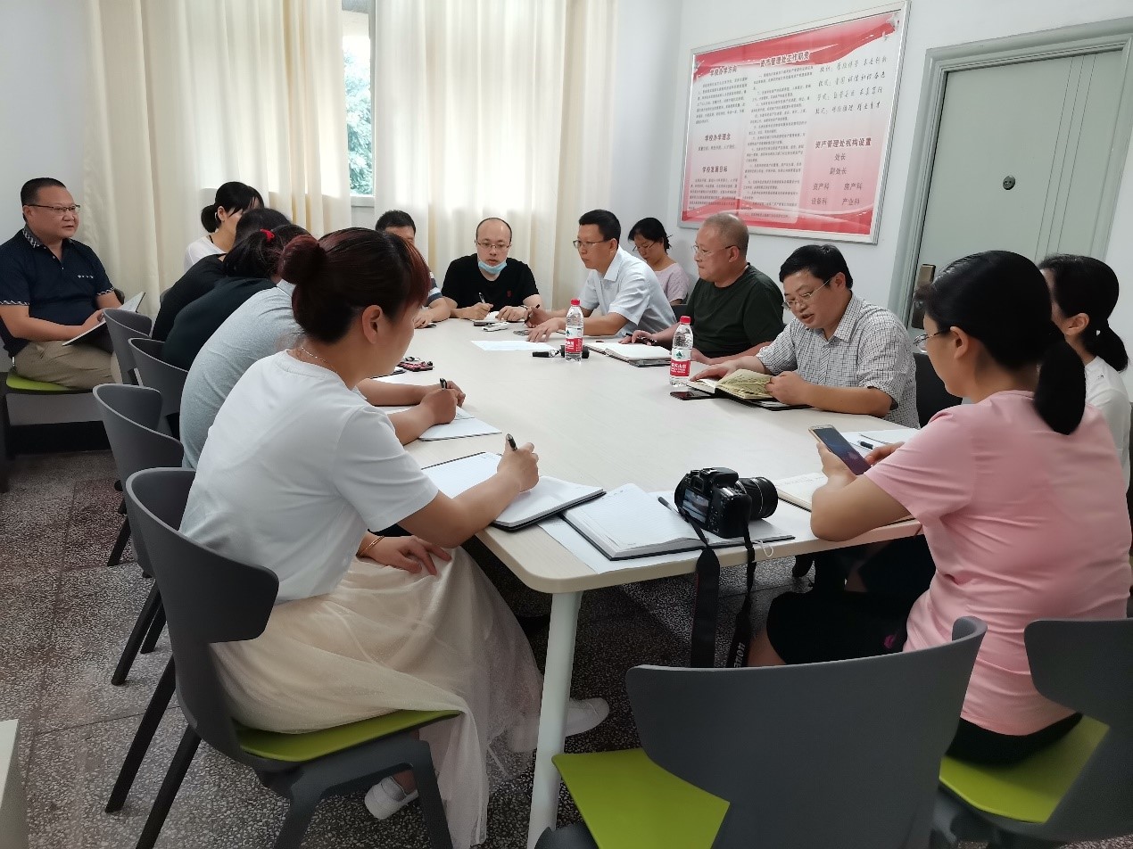 2020年7月16号下午2点,资产管理处组织召开全处教职工会议,会议传达了7月16日学校中层干部会议精神,同时对资产管理处近期特别是暑期工作进行了布置。