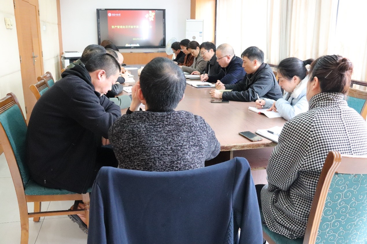 2021年3月1号下午2点,资产管理处在厚德楼8002会议室召开全处职工大会,刘强处长主持会议。
