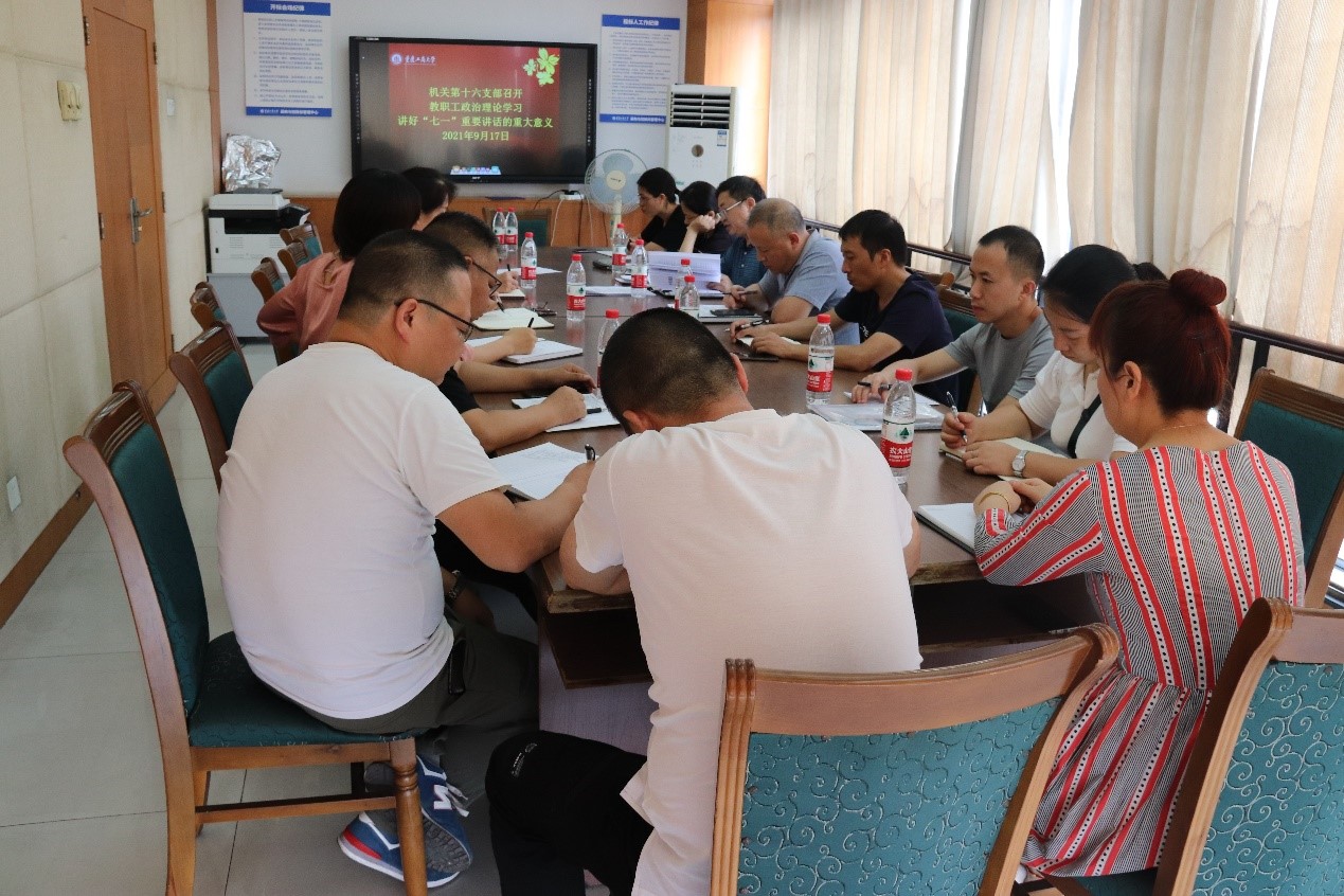 为学习贯彻习近平总书记在庆祝中国共产党成立100周年大会的重要讲话精神,2021917日,机关党委第十六支部在厚德楼8002会议室组织资产管理处全体职工开展宣讲会。