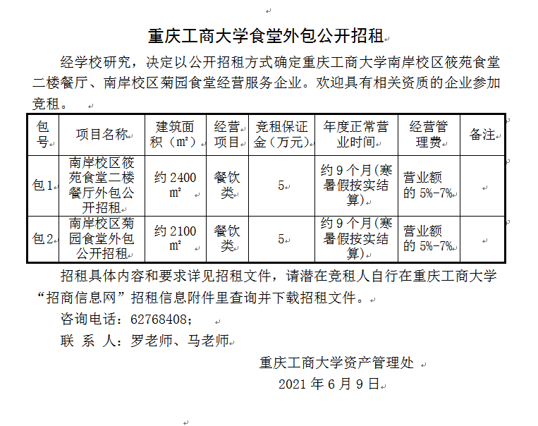 2138CC太阳集团食堂外包公开招租