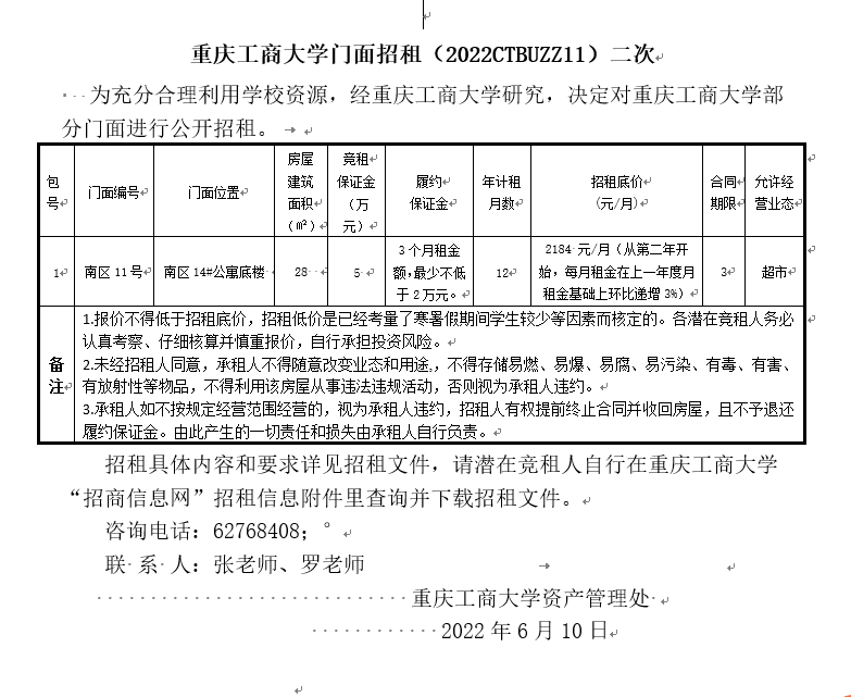 2138CC太阳集团门面招租(2022CTBUZZ12)二次