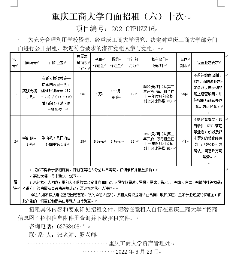 2138CC太阳集团门面招租(2022CTBUZZ03)四次