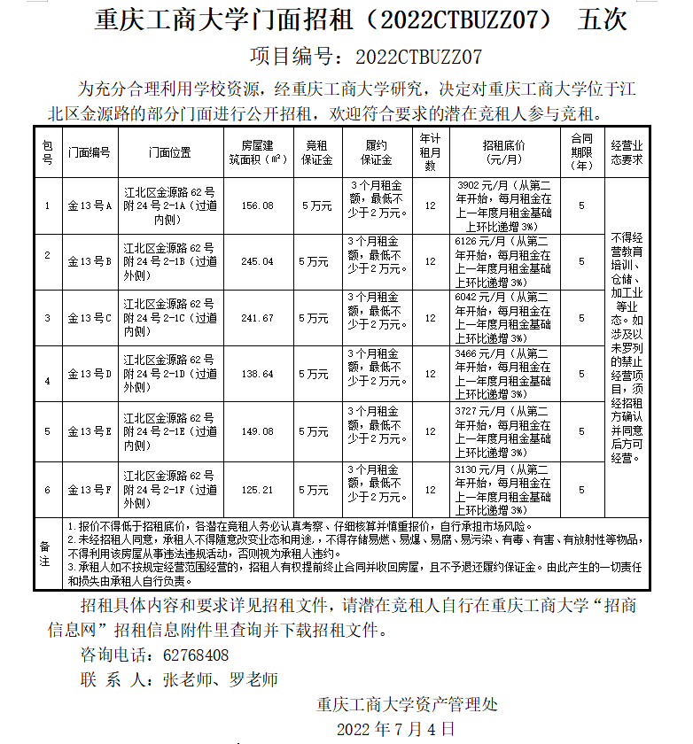 2138CC太阳集团门面招租(2022CTBUZZ07) 五次