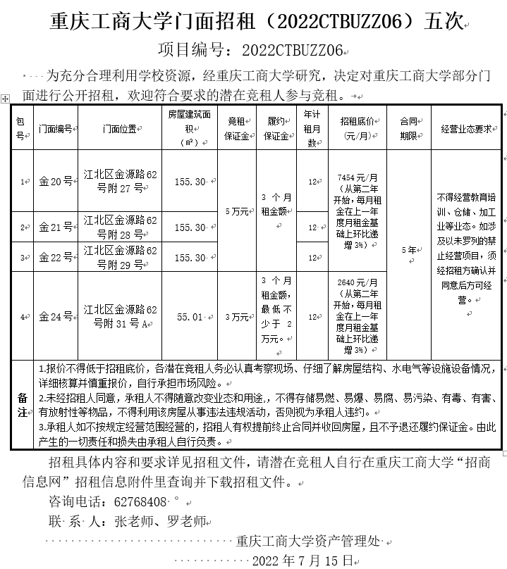 2138CC太阳集团门面招租(2022CTBUZZ07)六次