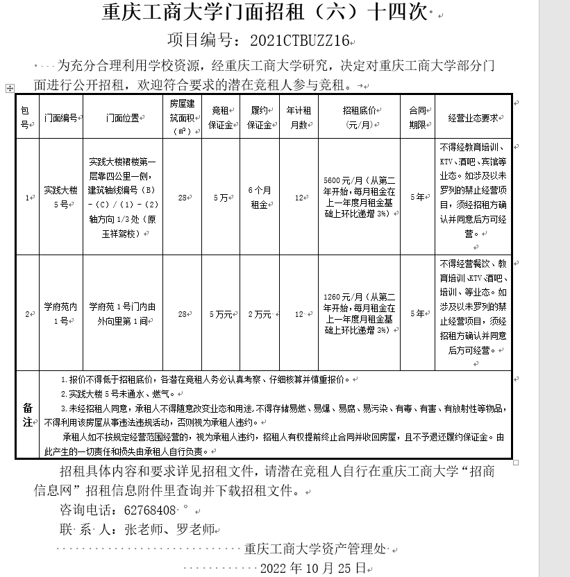 2138CC太阳集团门面招租(2022CTBUZZ14)二次
