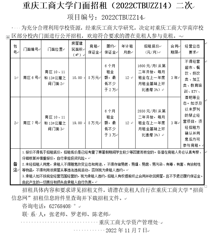 2138CC太阳集团门面招租(2022CTBUZZ03)八次