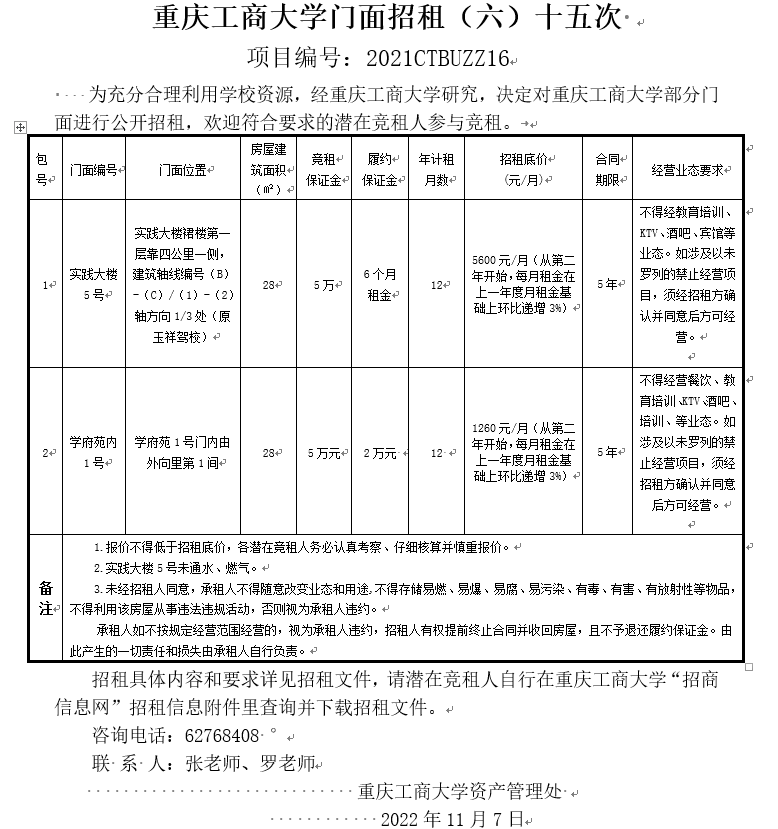 2138CC太阳集团门面招租(2022CTBUZZ03)八次补遗