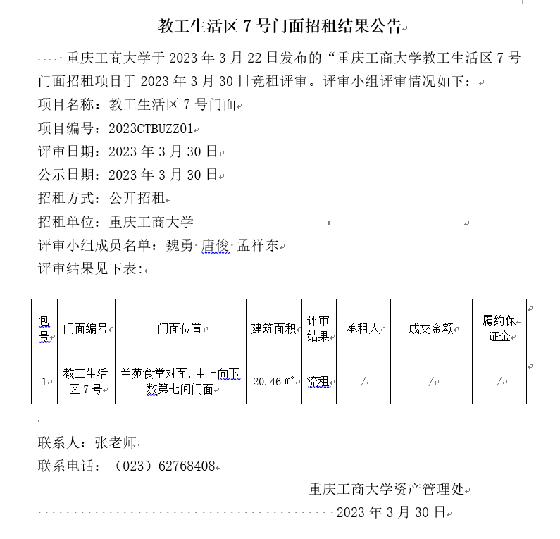 2138CC太阳集团门面招租(2022CTBUZZ03)六次结果公告