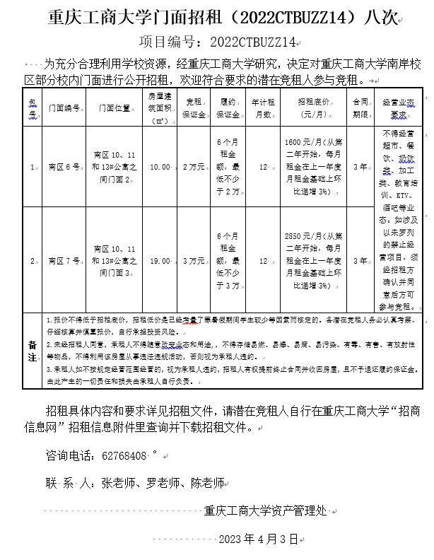 2138CC太阳集团门面招租(2022CTBUZZ03)十四次