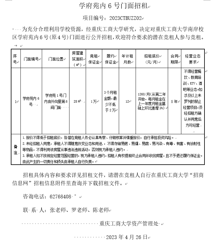 2138CC太阳集团门面招租(2023CTBUZZ03)七次