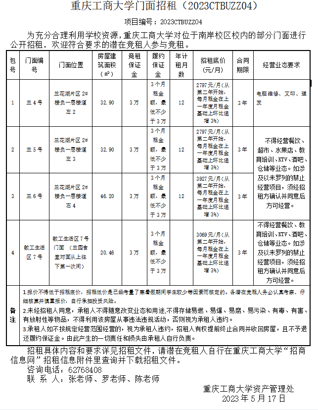 2138CC太阳集团门面招租(2023CTBUZZ03)七次