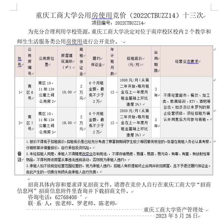 2138CC太阳集团公用房使用竞价(2022CTBUZZ14)