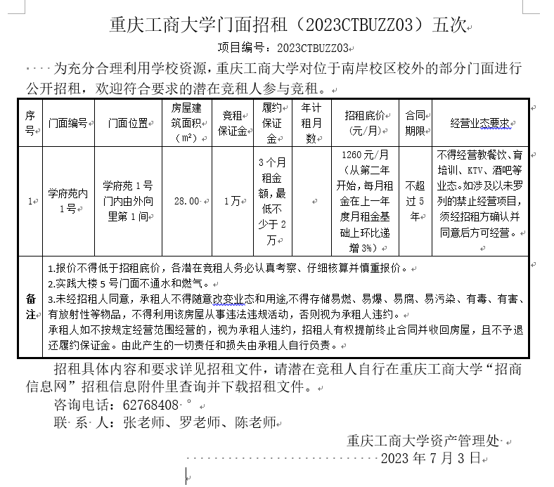 2138CC太阳集团门面招租(2023CTBUZZ03)五次