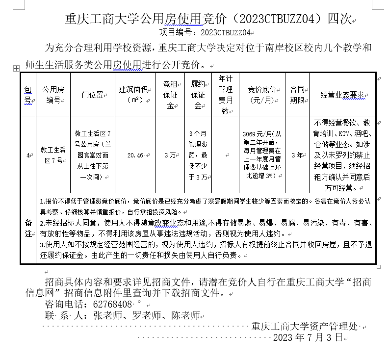 2138CC太阳集团公用房使用竞价(2023CTBUZZ04)四次