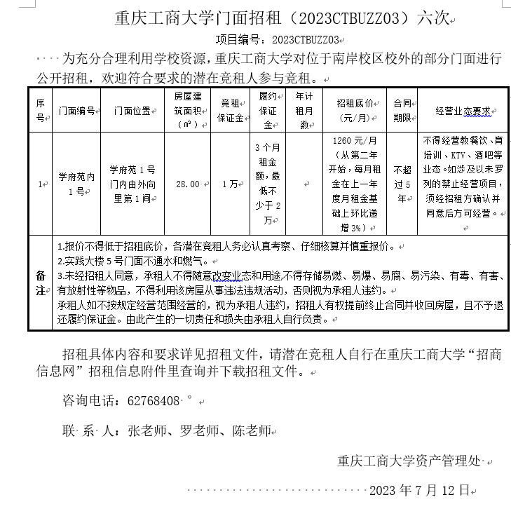 2138CC太阳集团门面招租(2023CTBUZZ03)六次