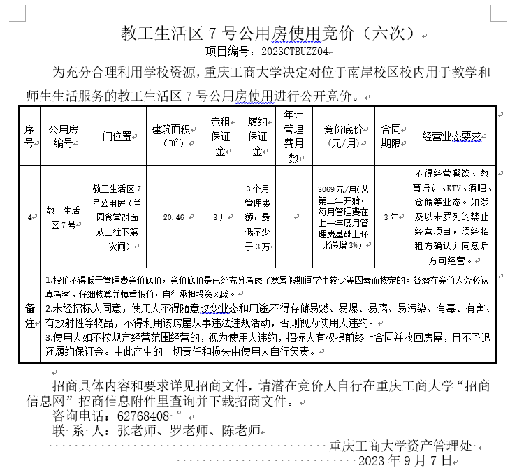 教工生活区7号公用房使用竞价(六次)