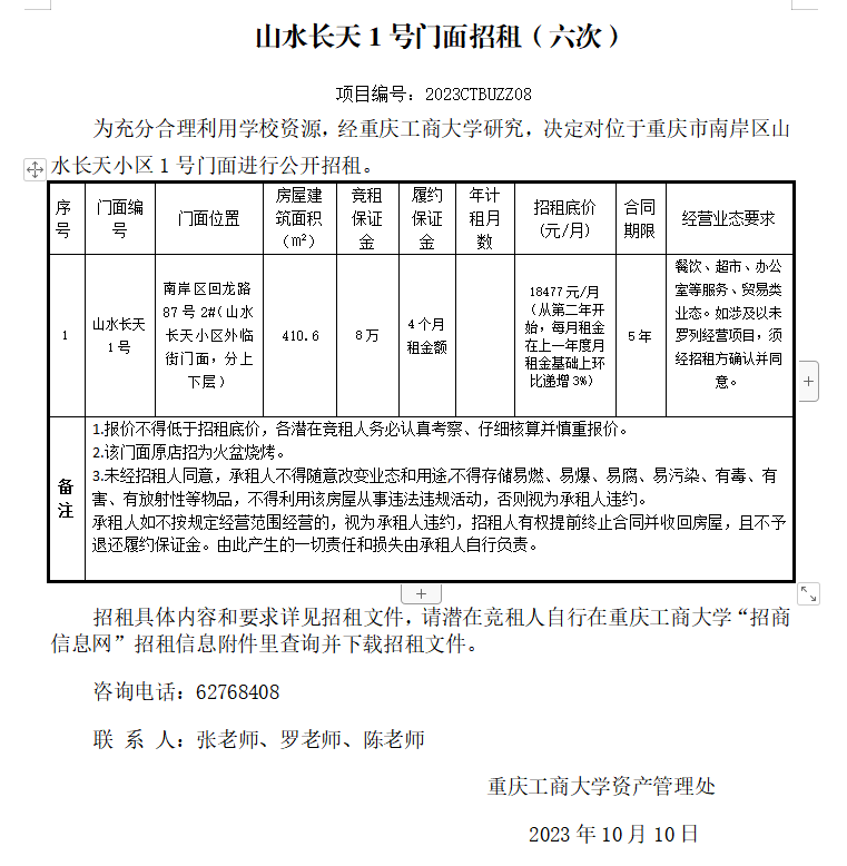 2138CC太阳集团门面招租(2023CTBUZZ03)九次