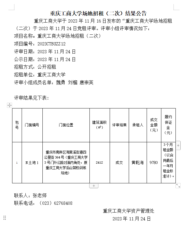 2138CC太阳集团场地招租(二次)结果公告