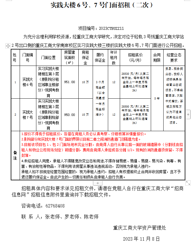实践大楼6号、7号门面招租(三次)