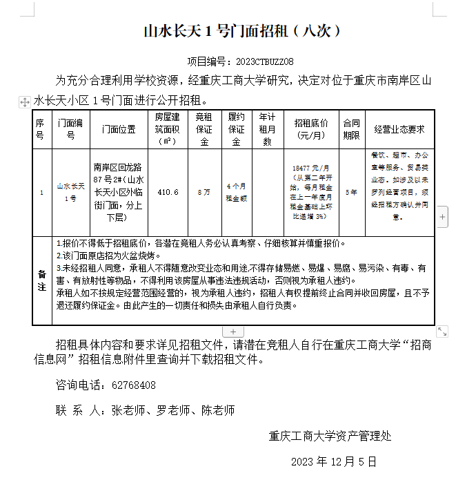 2138CC太阳集团门面招租(2023CTBUZZ03)十二次
