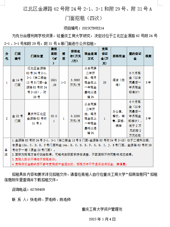 江北区金源路62号附24号2-1、3-1和附29号、附31号A门面招租(四次).docx
