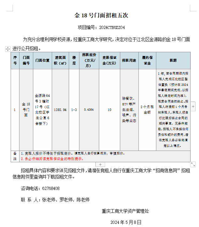 2138CC太阳集团金6号、金7号门面招租结果公告