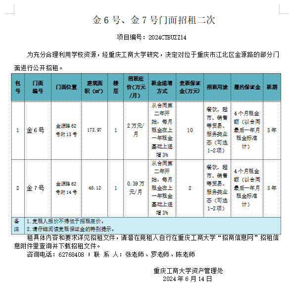 2138CC太阳集团金6号、金7号门面招租二次结果公告