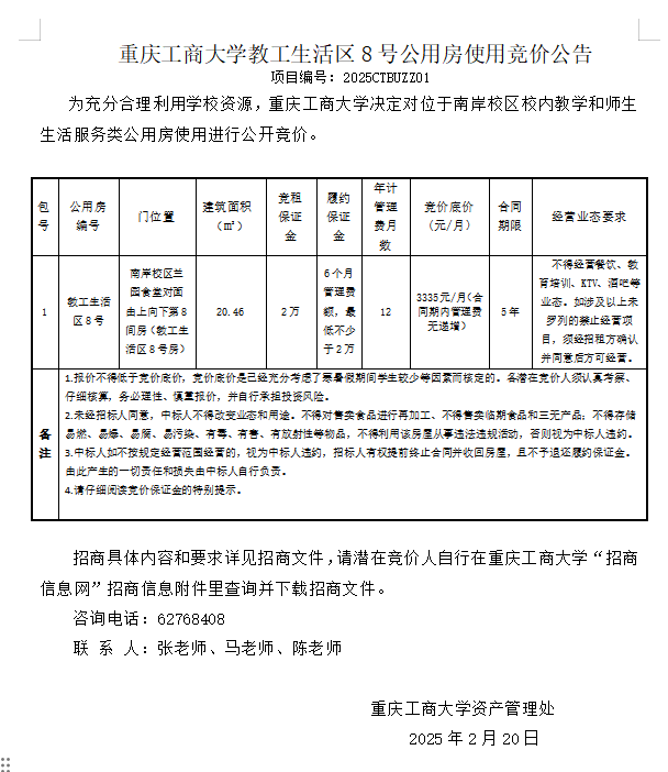 2138CC太阳集团教工生活区8号公用房使用竞价公告