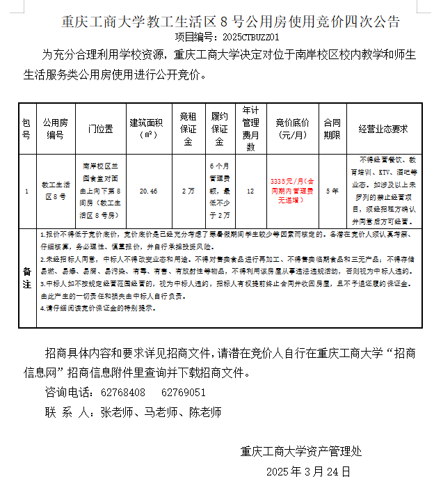 2138CC太阳集团教工生活区8号公用房使用竞价四次公告
