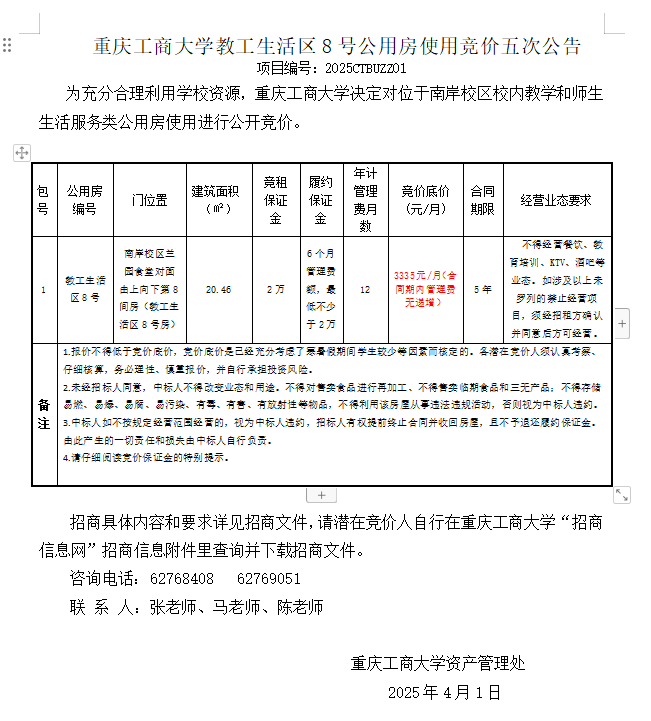 2138CC太阳集团教工生活区8号公用房使用竞价四次公告