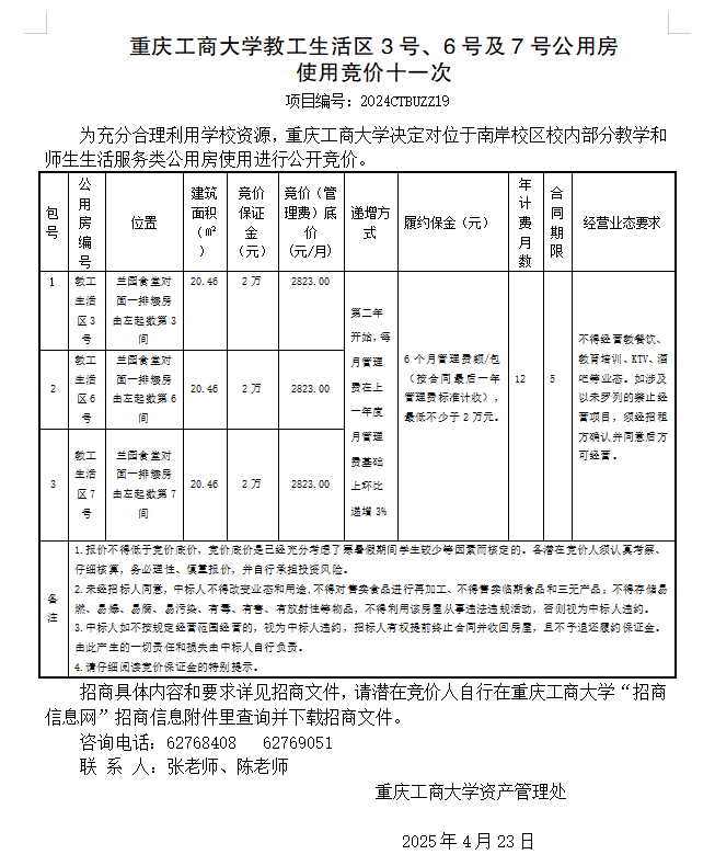 2138CC太阳集团教工生活区3号、6号及7号公用房 使用竞价十二次