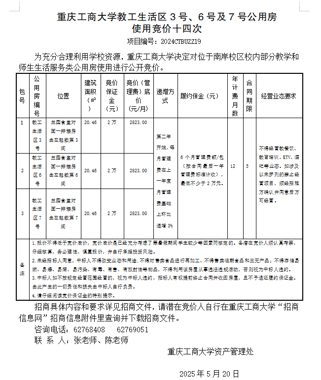 2138CC太阳集团教工生活区3号、6号及7号公用房 使用竞价十五次
