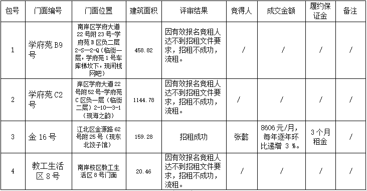 2138CC太阳集团于2021年9月6日发布的“2138CC太阳集团门面招租(三)”项目于2021年9月14日竞租评审。评审小组评审情况如下: