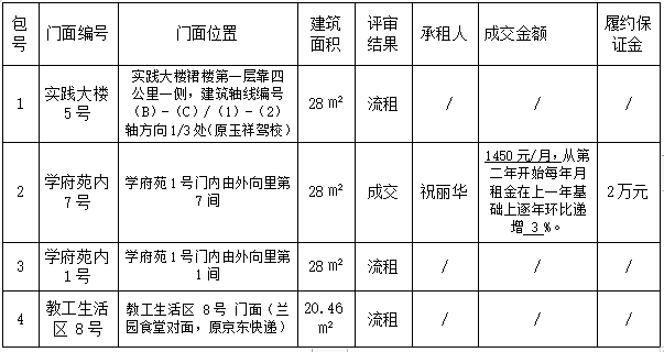 2138CC太阳集团门面招租(六)二次招租结果公告