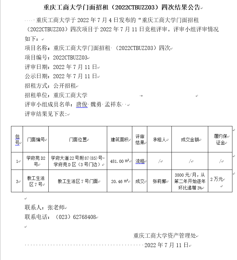 2138CC太阳集团门面招租(2022CTBUZZ03)四次结果公告