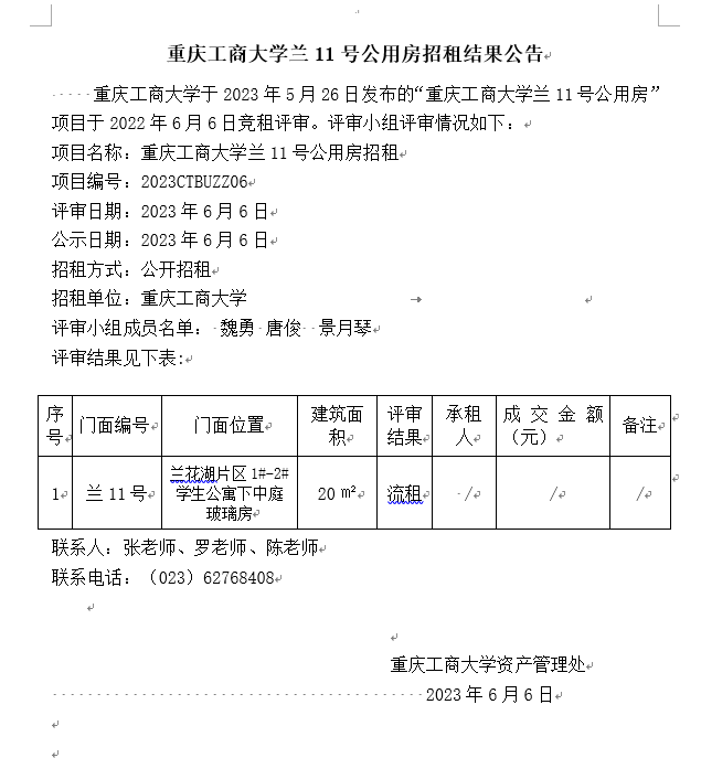 2138CC太阳集团门面招租(2022CTBUZZ14)十三次结果公告