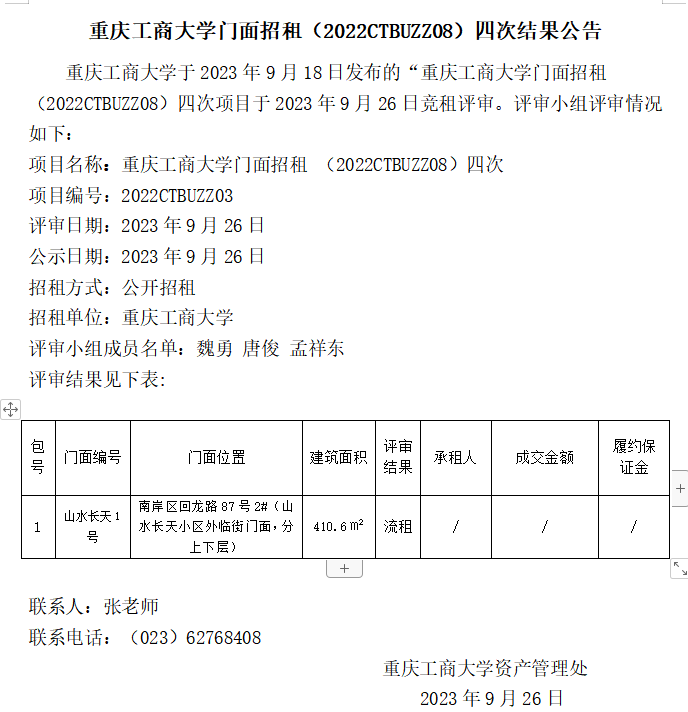 2138CC太阳集团门面招租(2022CTBUZZ08)四次结果公告