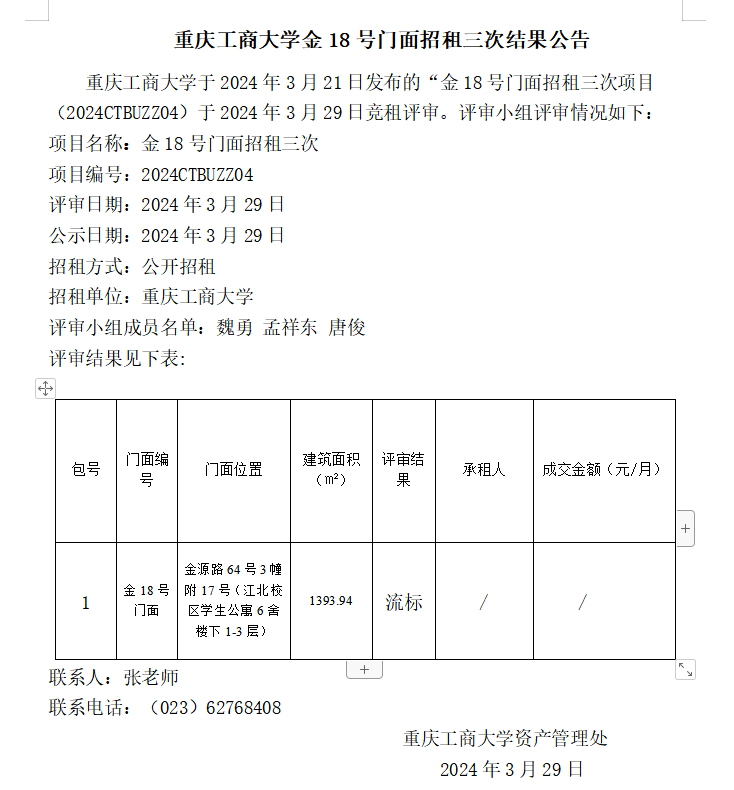 2138CC太阳集团金18号门面招租三次结果公告