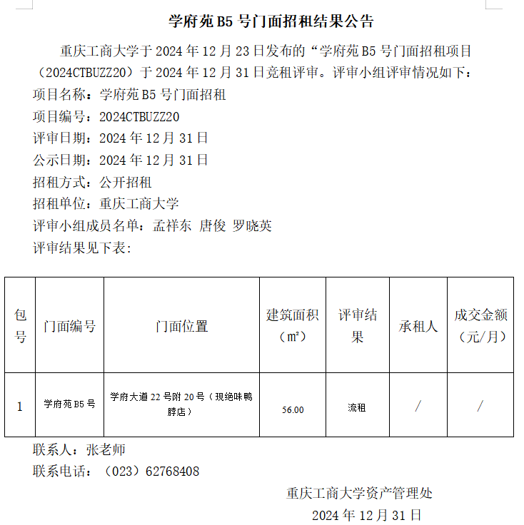 2138CC太阳集团兰2号及教工生活区3号、6号、7号公用房 使用竞价结果公告
