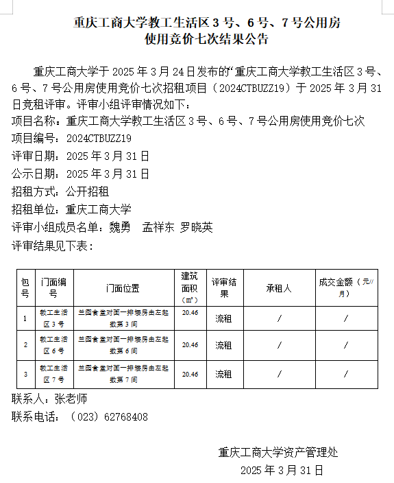 2138CC太阳集团教工生活区3号、6号、7号公用房 使用竞价七次结果公告