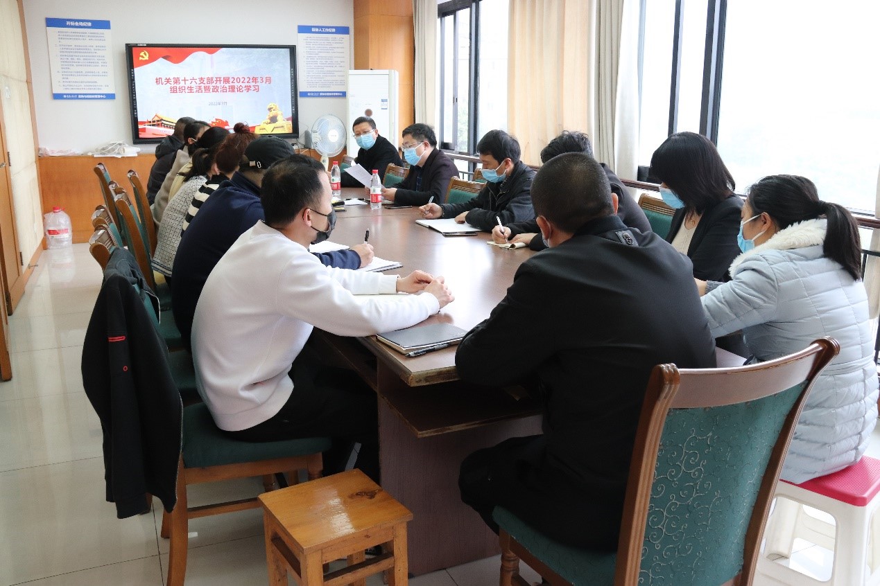 3月25日下午2:10,机关党委第十六支部在厚德楼8002会议室开展3月份党的组织生活暨职工政治理论学习,会议由支部书记刘强主持,全体党员和职工参加。