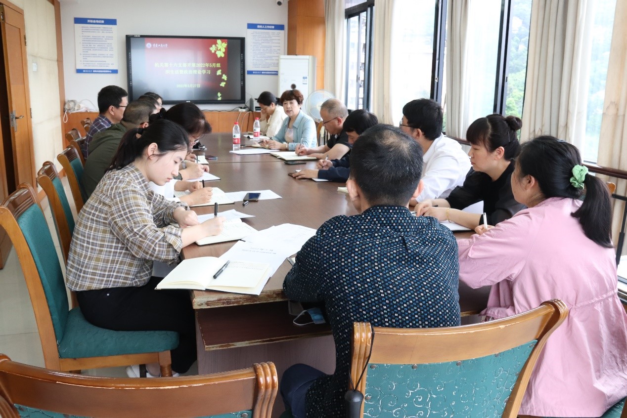 5月27日14:30,机关党委第十六支部全体党员和教职工在厚德楼8002会议室开展5月组织生活暨教职工政治理论学习,会议由陈永丽同志主持。