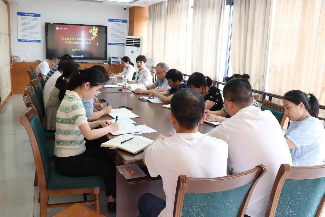 6月10日14:30,机关党委第十六支部全体党员和教职工在厚德楼8002会议室开展6月组织生活暨教职工政治理论学习,会议由陈永丽同志主持。